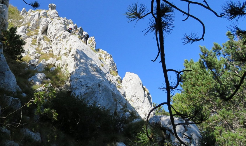 Okupili smo se u malom istarskom selu Brgudac odakle smo krenuli na uspon prema Koritima i Brajkovom vrhu. Po dolasku podno Brajkovog vrha odradili smo ponavljanje uzlova koji se koriste u Vodičkoj službi. Nakon toga pokazalo se vodičima izrada šumskog gelendera koji su zatim sami vježbali pojedinačno. Iza toga se pokazala izrada i stjenskog gelendera koji su svi vodiči mogli proći. Usput su se pokazale i tehnike osiguravanja i prijelaza pri susretu u suprotnom smjeru.